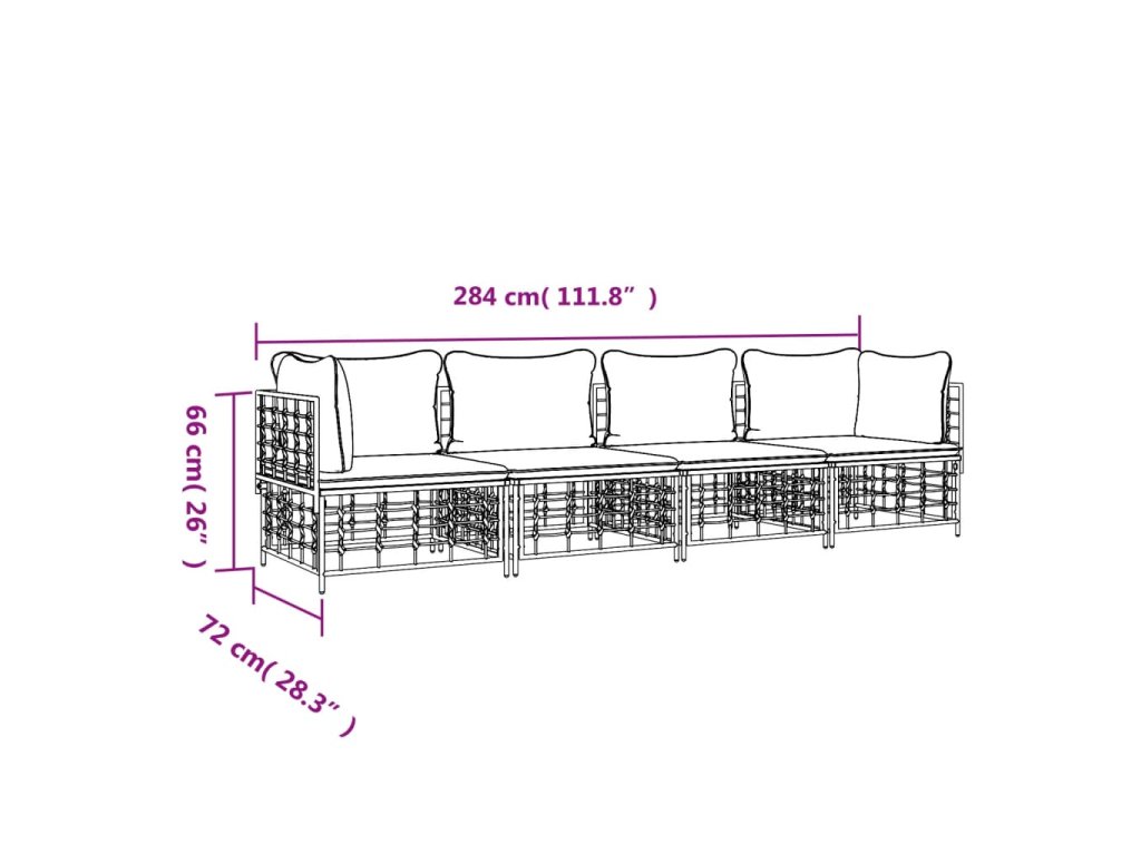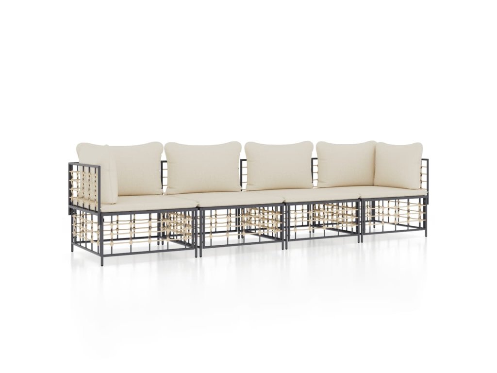 4dílná zahradní sedací souprava s poduškami antracit polyratan 3186698