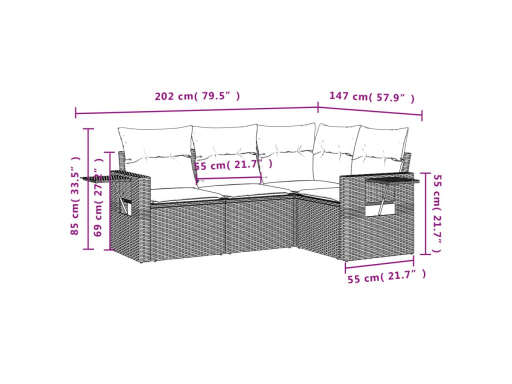 4dílná zahradní sedací souprava s poduškami béžová polyratan 3220108