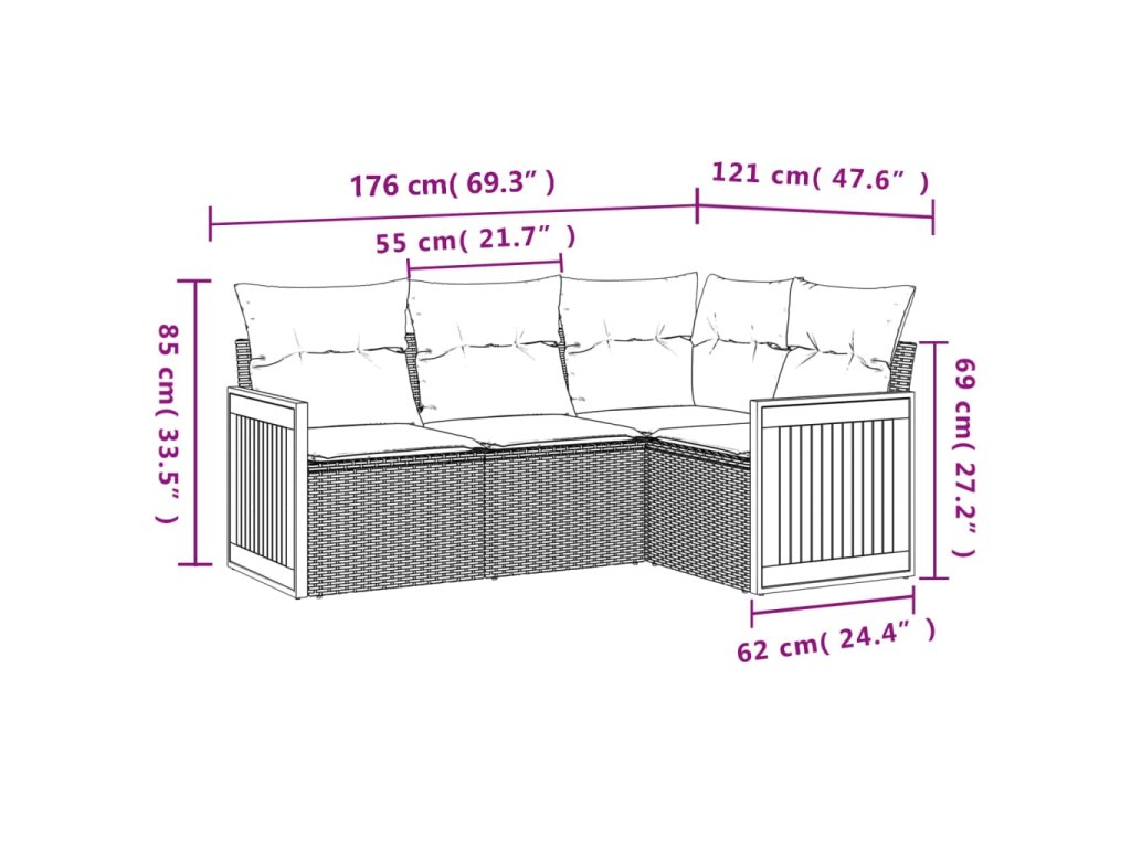 Tato zahradní sedací souprava je dokonalým doplňkem vaší zahrady, terasy nebo dvorku a poskytne vám pohodlné a příjemné místo, kde si můžete povídat s rodinou a přáteli nebo jen tak odpočívat a užívat si pobyt venku.