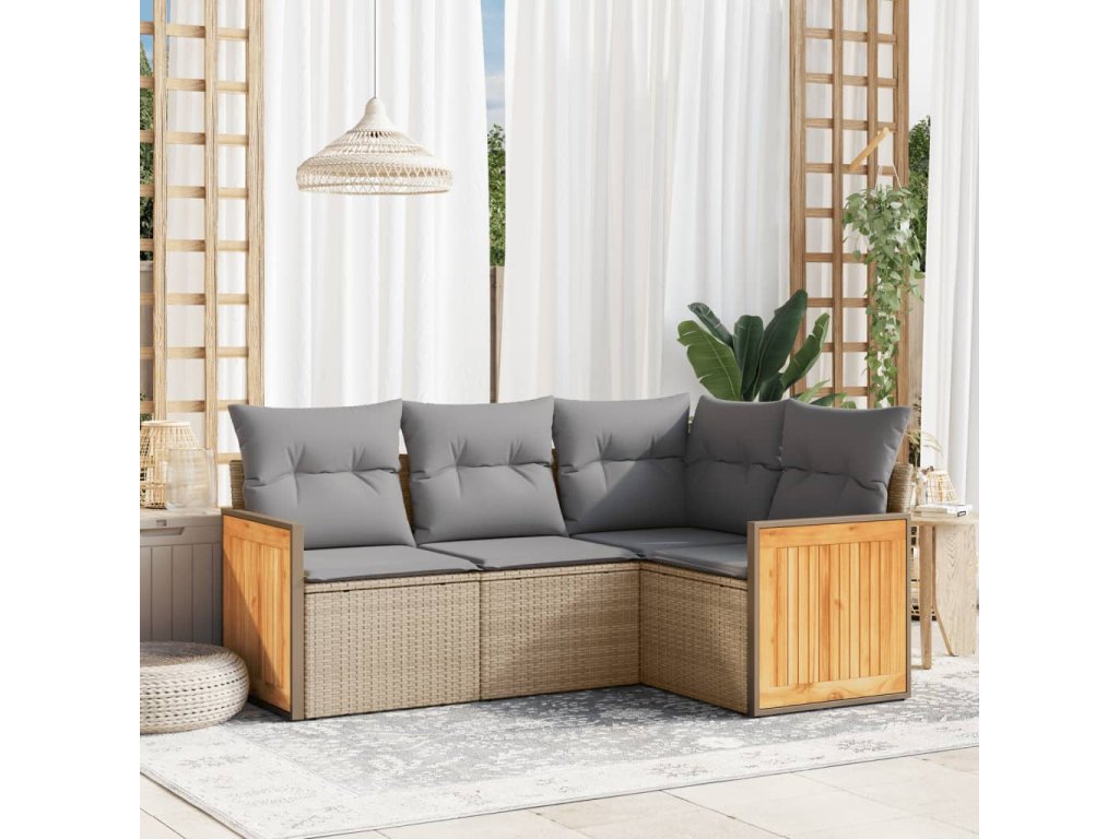 4dílná zahradní sedací souprava s poduškami béžová polyratan 3227613