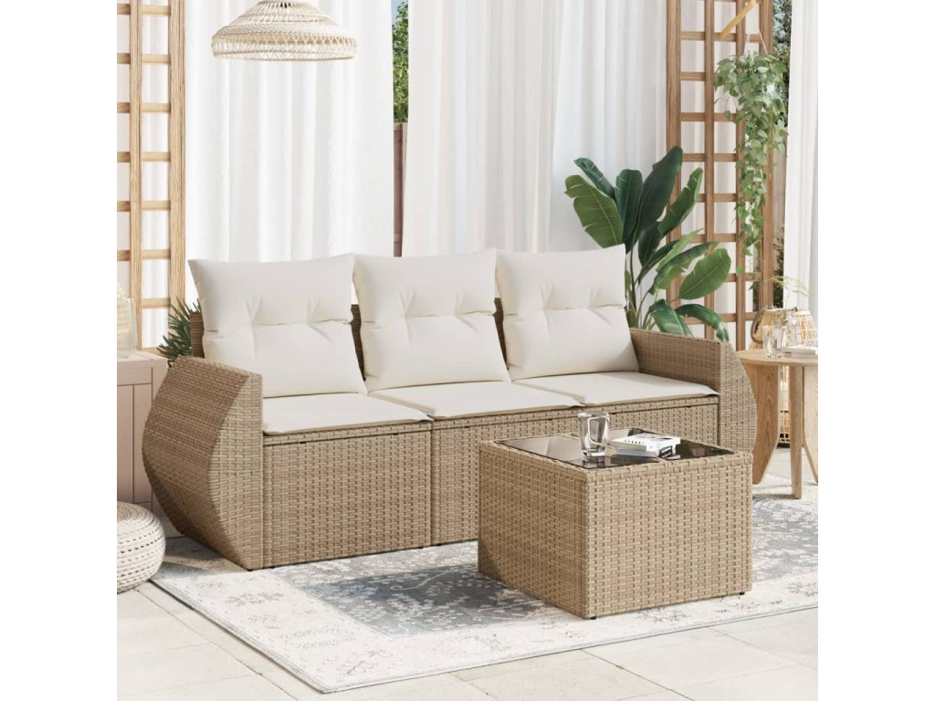 4dílná zahradní sedací souprava s poduškami béžová polyratan 3253405