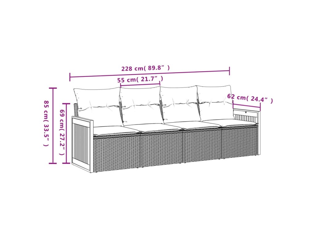 4dílná zahradní sedací souprava s poduškami béžová polyratan 3259853