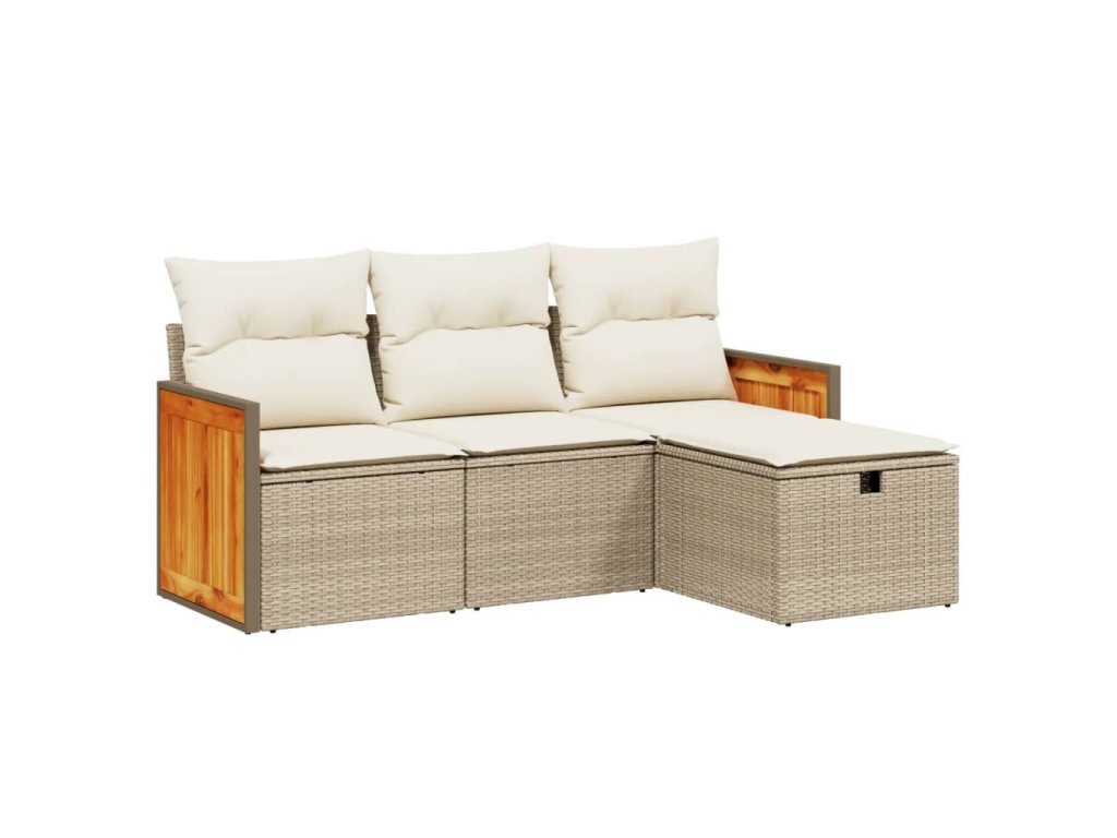 4dílná zahradní sedací souprava s poduškami béžová polyratan 3265706