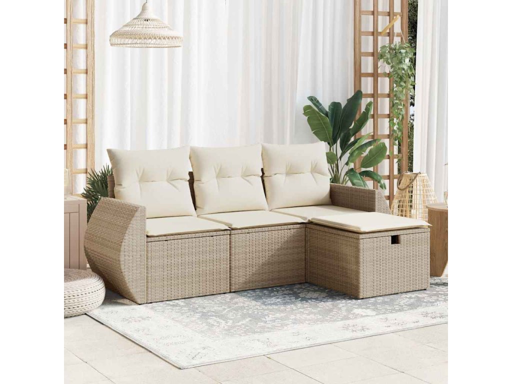 4dílná zahradní sedací souprava s poduškami béžová polyratan 3325554