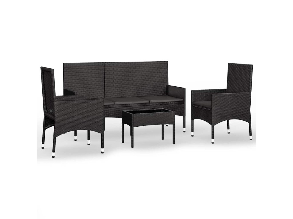 4dílná zahradní sedací souprava s poduškami černá polyratan 319502