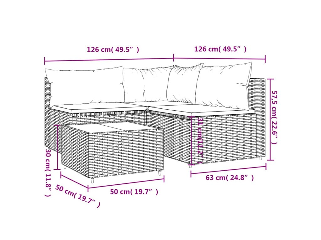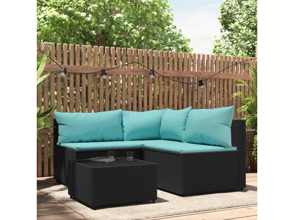 4dílná zahradní sedací souprava s poduškami černá polyratan 319797