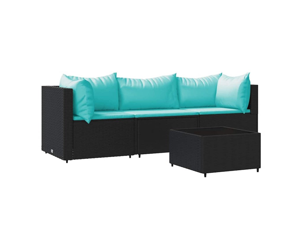 4dílná zahradní sedací souprava s poduškami černá polyratan 319799