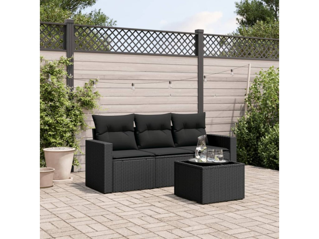 4dílná zahradní sedací souprava s poduškami černá polyratan 3218655