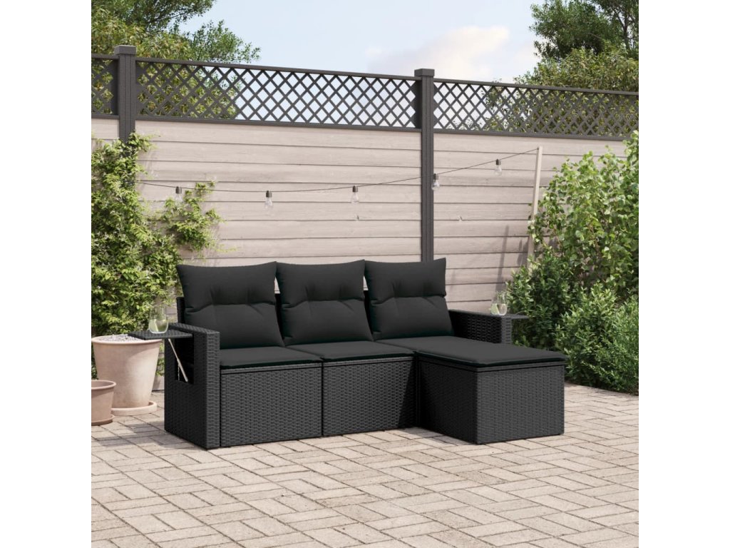4dílná zahradní sedací souprava s poduškami černá polyratan 3220064