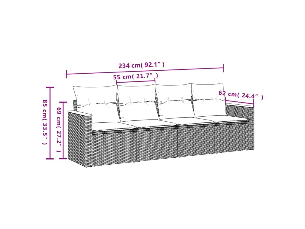 Tato zahradní sedací souprava je dokonalým doplňkem vaší zahrady, terasy nebo dvorku a poskytne vám pohodlné a příjemné místo, kde si můžete povídat s rodinou a přáteli nebo jen tak odpočívat a užívat si pobyt venku.