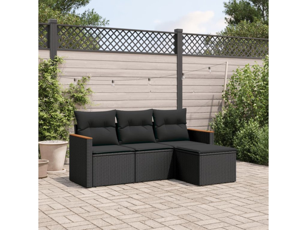 4dílná zahradní sedací souprava s poduškami černá polyratan 3225901