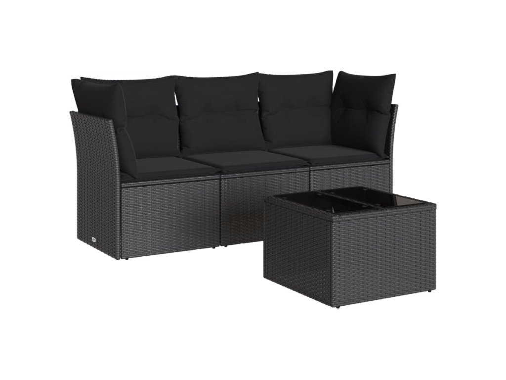 4dílná zahradní sedací souprava s poduškami černá polyratan 3249054
