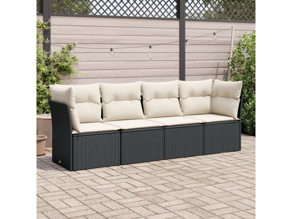 4dílná zahradní sedací souprava s poduškami černá polyratan 3249065