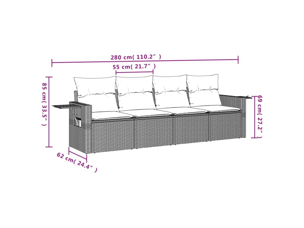 4dílná zahradní sedací souprava s poduškami černá polyratan 3252212