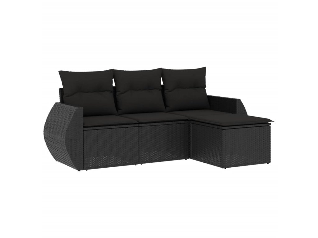 4dílná zahradní sedací souprava s poduškami černá polyratan 3253602