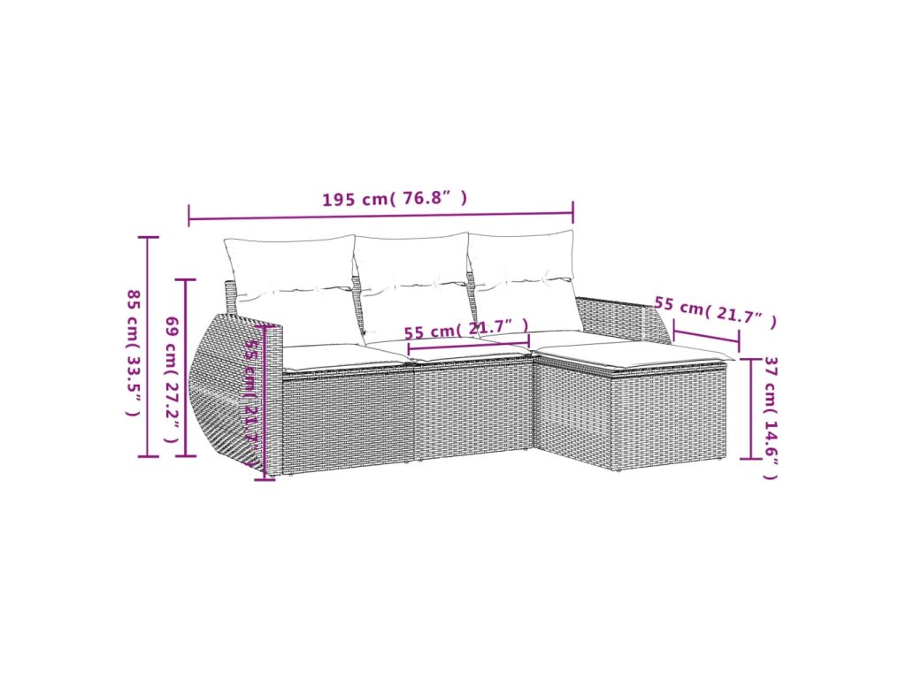 Tato zahradní sedací souprava je dokonalým doplňkem vaší zahrady, terasy nebo dvorku a poskytne vám pohodlné a příjemné místo, kde si můžete povídat s rodinou a přáteli nebo jen tak odpočívat a užívat si pobyt venku.