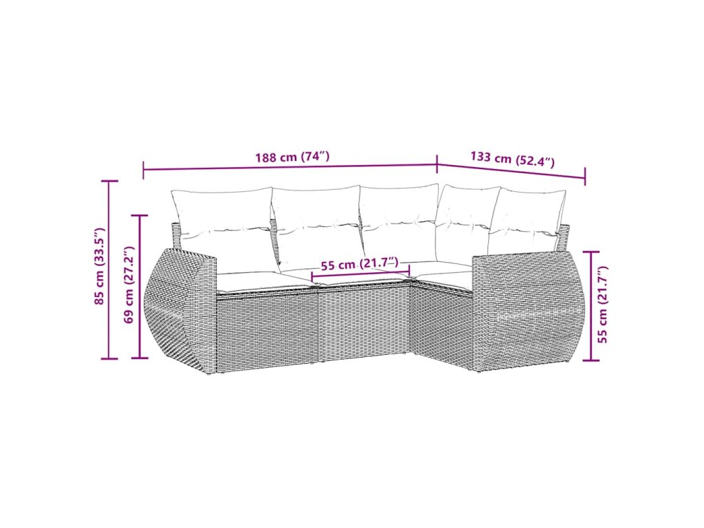 Tato zahradní sedací souprava je dokonalým doplňkem vaší zahrady, terasy nebo dvorku a poskytne vám pohodlné a příjemné místo, kde si můžete povídat s rodinou a přáteli nebo jen tak odpočívat a užívat si pobyt venku.