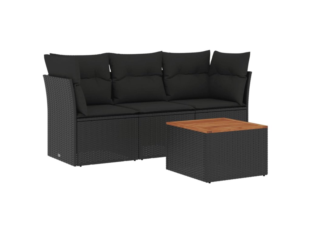 4dílná zahradní sedací souprava s poduškami černá polyratan 3255796