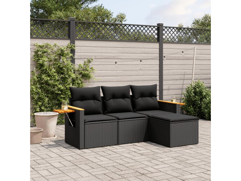 4dílná zahradní sedací souprava s poduškami černá polyratan 3259143