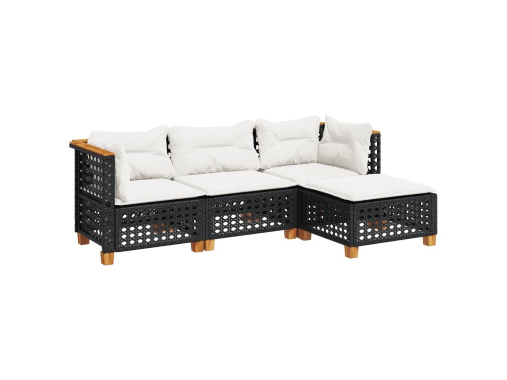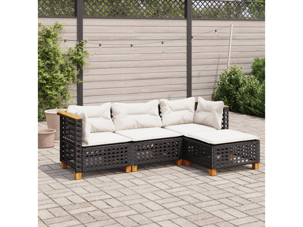 4dílná zahradní sedací souprava s poduškami černá polyratan 3261782