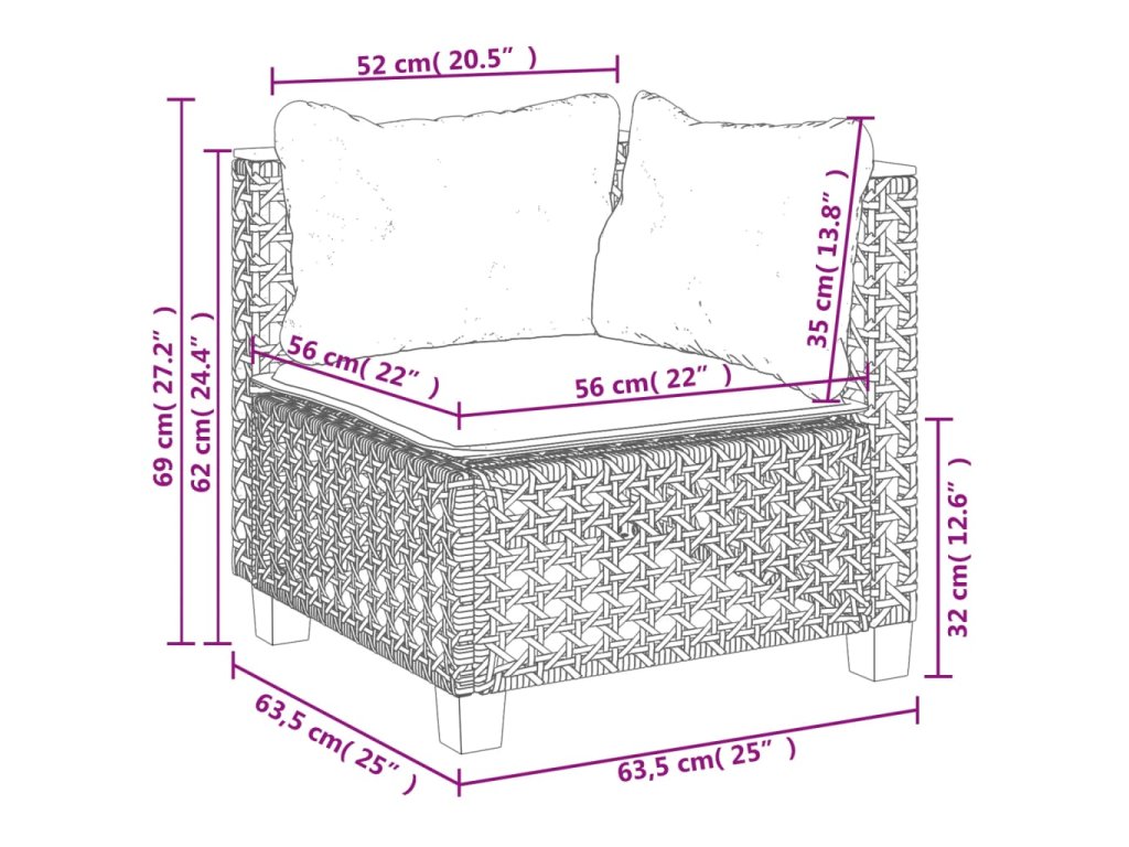 - Rozměry podušky na sedák (rohový díl): 56,5 x 56,5 x 3 cm (Š x H x T)
