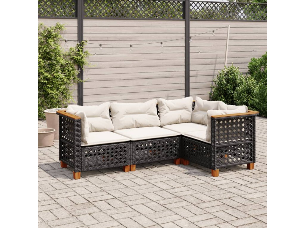 4dílná zahradní sedací souprava s poduškami černá polyratan 3261800