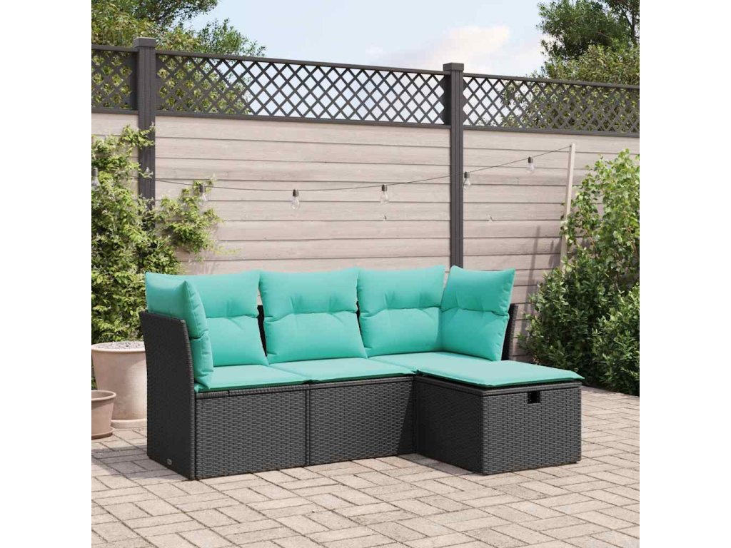 4dílná zahradní sedací souprava s poduškami černá polyratan 3325253