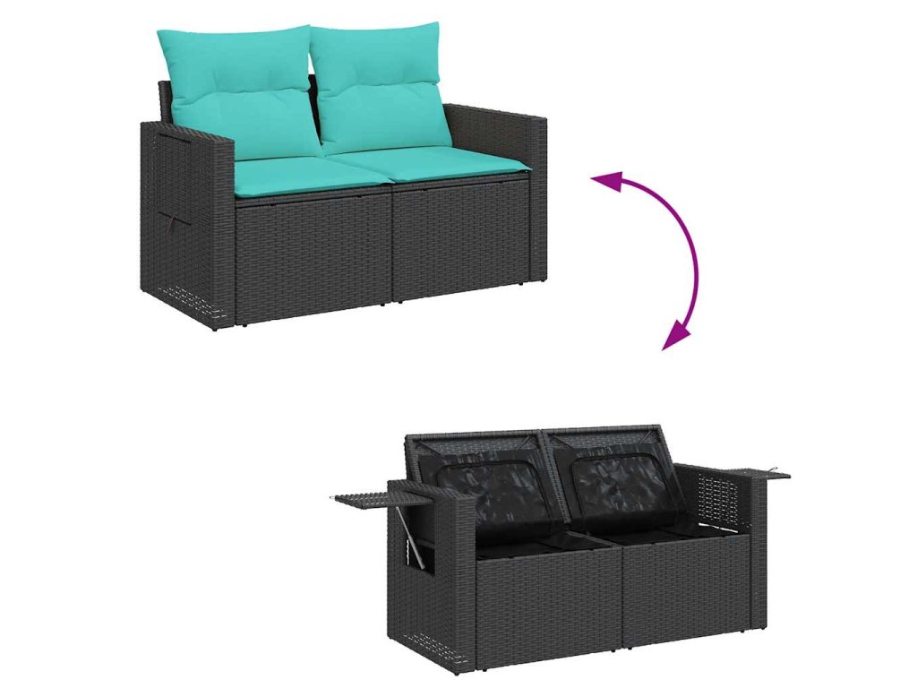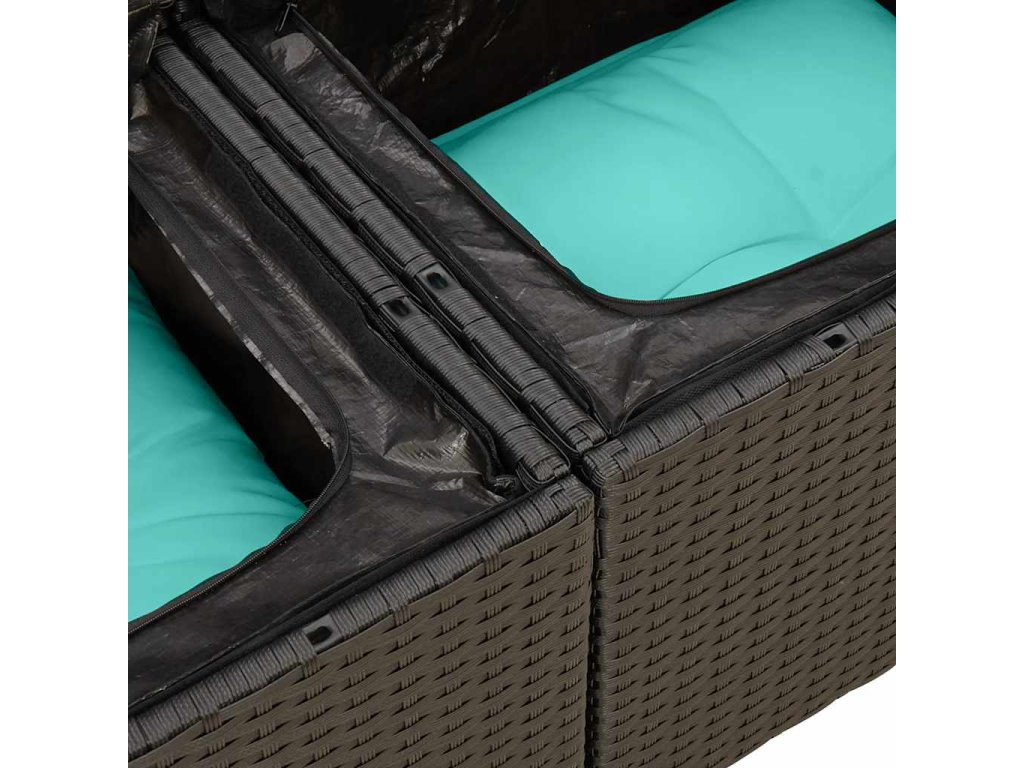 - Úložný prostor s voděodolným vakem: Každý zahradní sedací díl má úložný prostor pod sedákem, který je opatřen voděodolnou vložkou a poslouží vám k ukládání podušek, hraček a dalších věcí. Vnitřní vak má horní kryt a lze jej bezpečně připevnit k sedáku pomocí suchého zipu, což zaručí větší stabilitu.