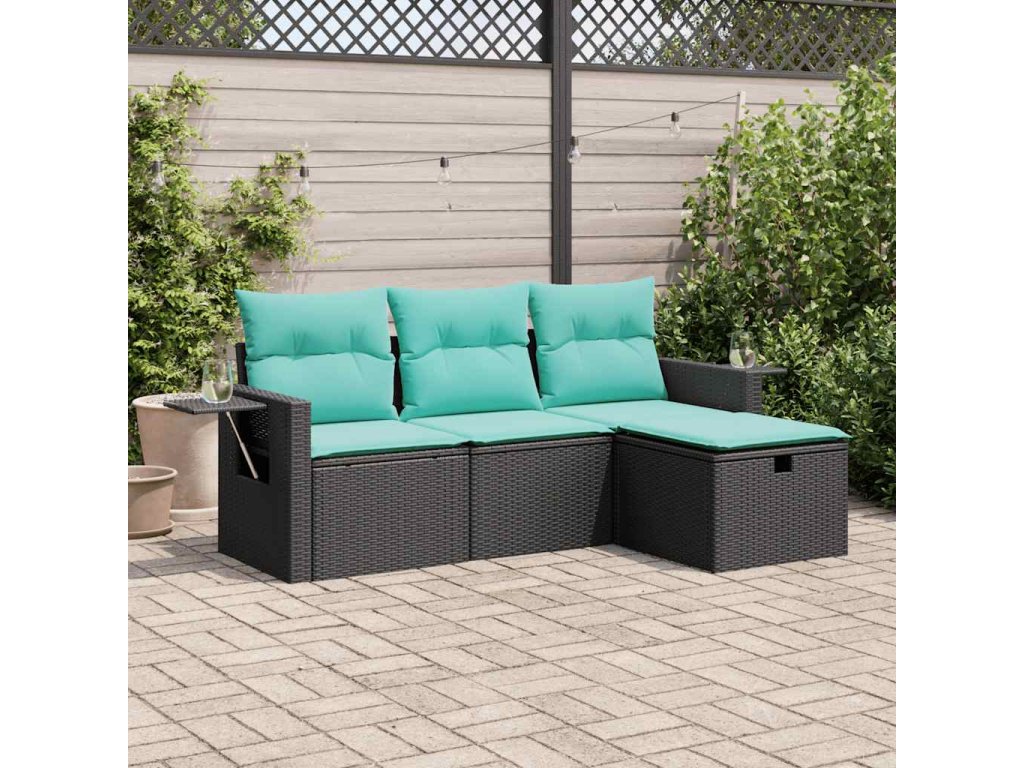 4dílná zahradní sedací souprava s poduškami černá polyratan 3325453