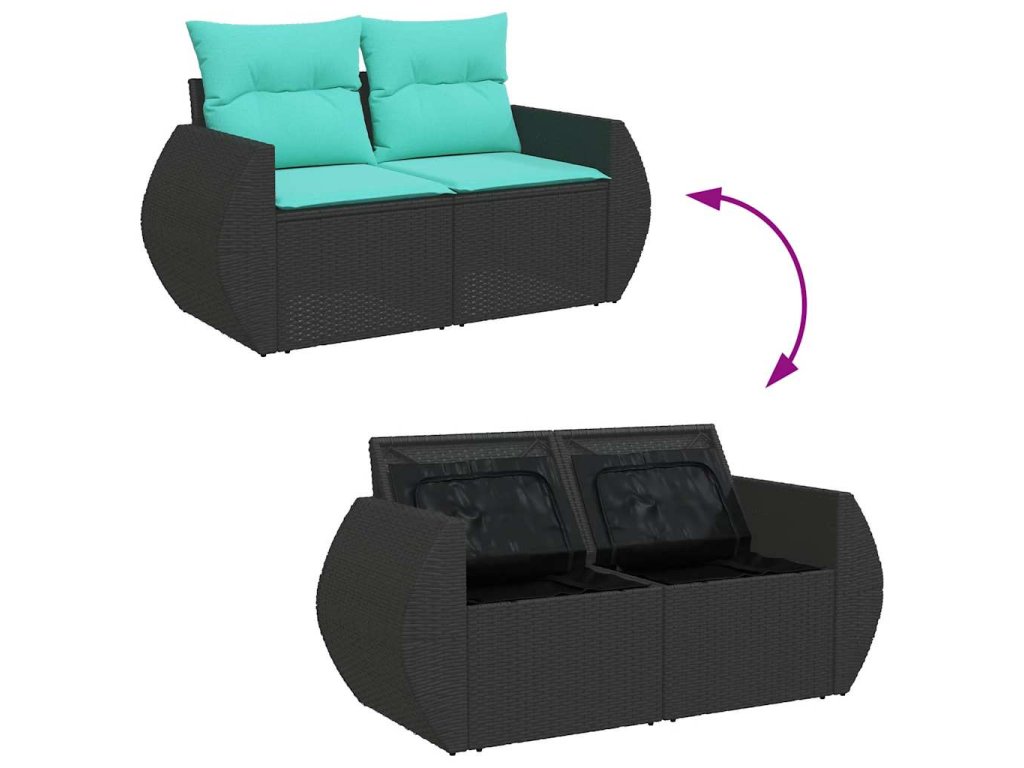 - Úložný prostor s voděodolným vakem: Každý zahradní sedací díl má úložný prostor pod sedákem, který je opatřen voděodolnou vložkou a poslouží vám k ukládání podušek, hraček a dalších věcí. Vnitřní vak má horní kryt a lze jej bezpečně připevnit k sedáku pomocí suchého zipu, což zaručí větší stabilitu.