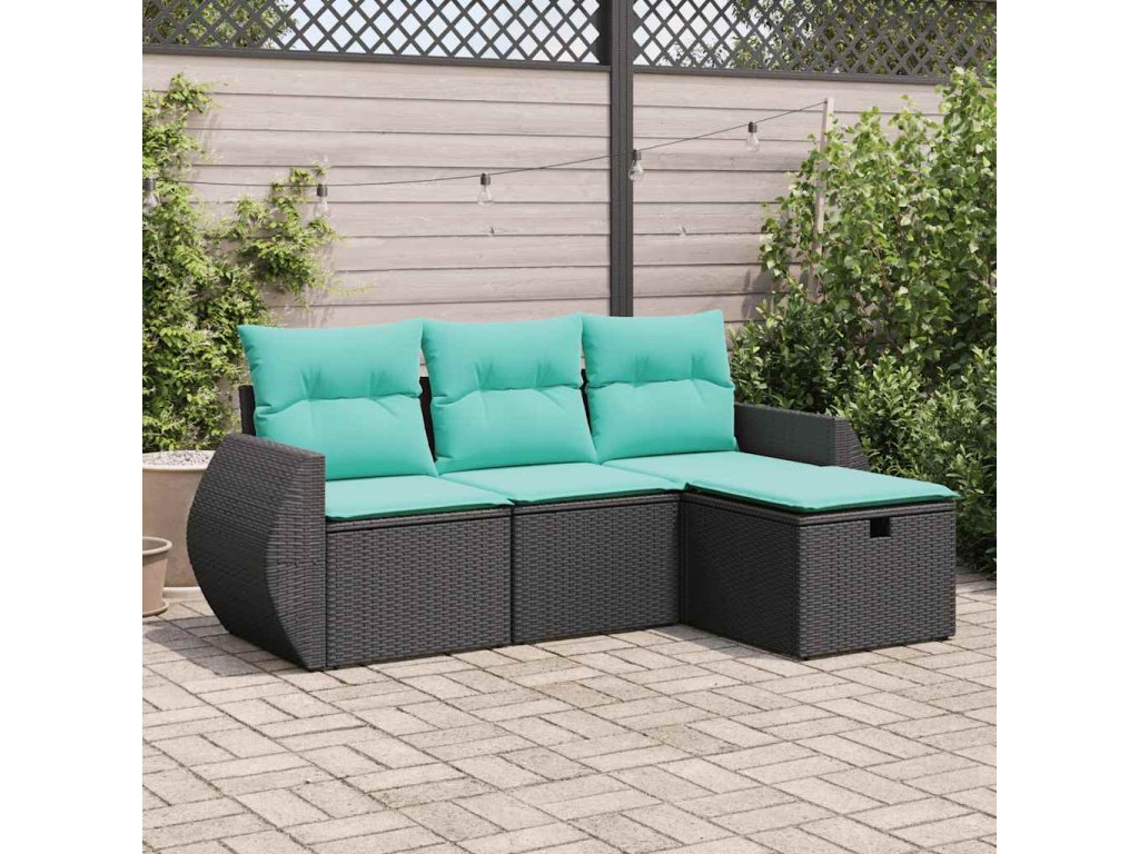 4dílná zahradní sedací souprava s poduškami černá polyratan 3325553