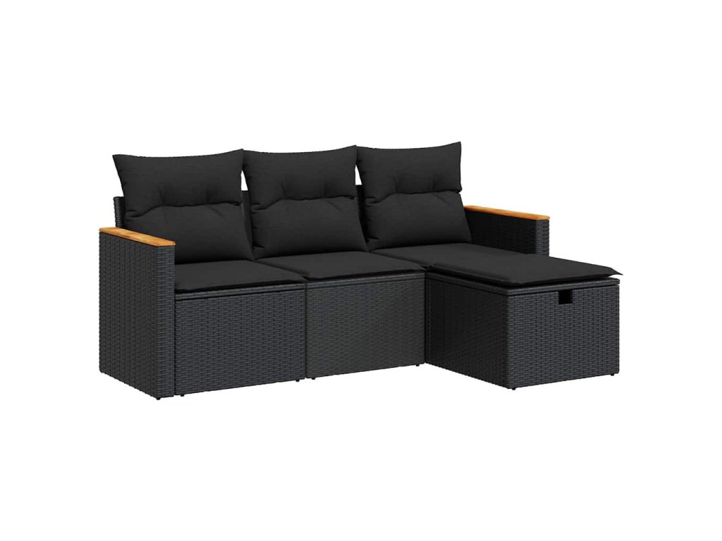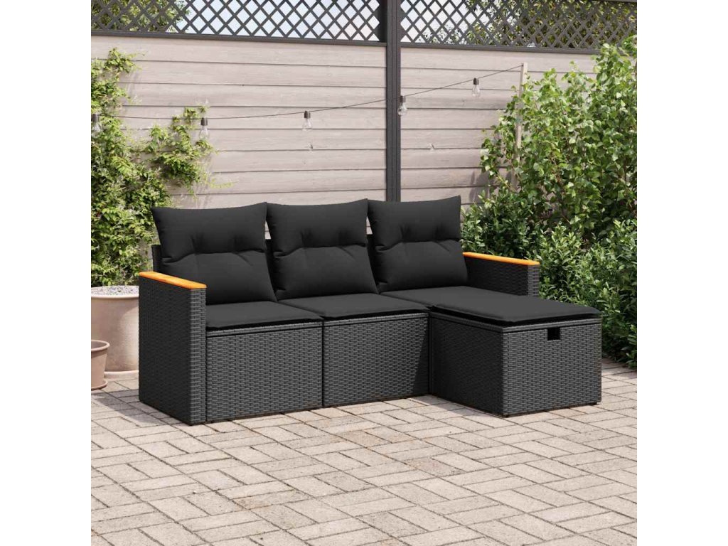 4dílná zahradní sedací souprava s poduškami černá polyratan 3325891
