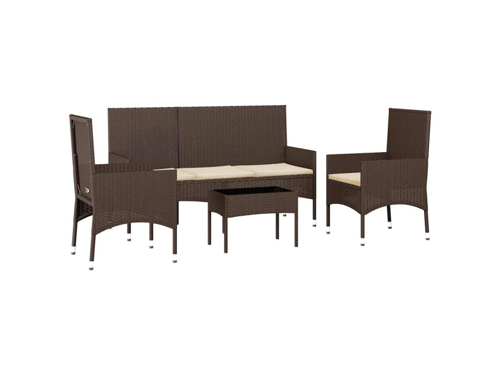 4dílná zahradní sedací souprava s poduškami hnědá polyratan 319499