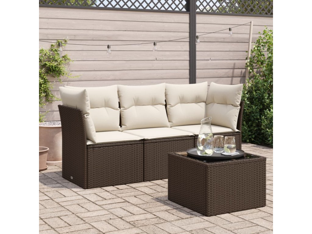4dílná zahradní sedací souprava s poduškami hnědá polyratan 3217223