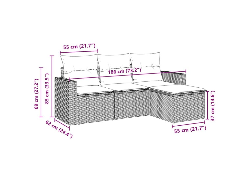 Tato zahradní sedací souprava je dokonalým doplňkem vaší zahrady, terasy nebo dvorku a poskytne vám pohodlné a příjemné místo, kde si můžete povídat s rodinou a přáteli nebo jen tak odpočívat a užívat si pobyt venku.