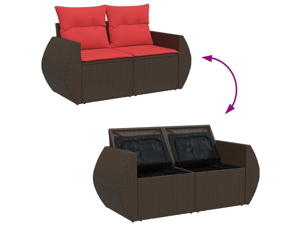- Úložný prostor s voděodolným vakem: Každý zahradní sedací díl má úložný prostor pod sedákem, který je opatřen voděodolnou vložkou a poslouží vám k ukládání podušek, hraček a dalších věcí. Vnitřní vak má horní kryt a lze jej bezpečně připevnit k sedáku pomocí suchého zipu, což zaručí větší stabilitu.