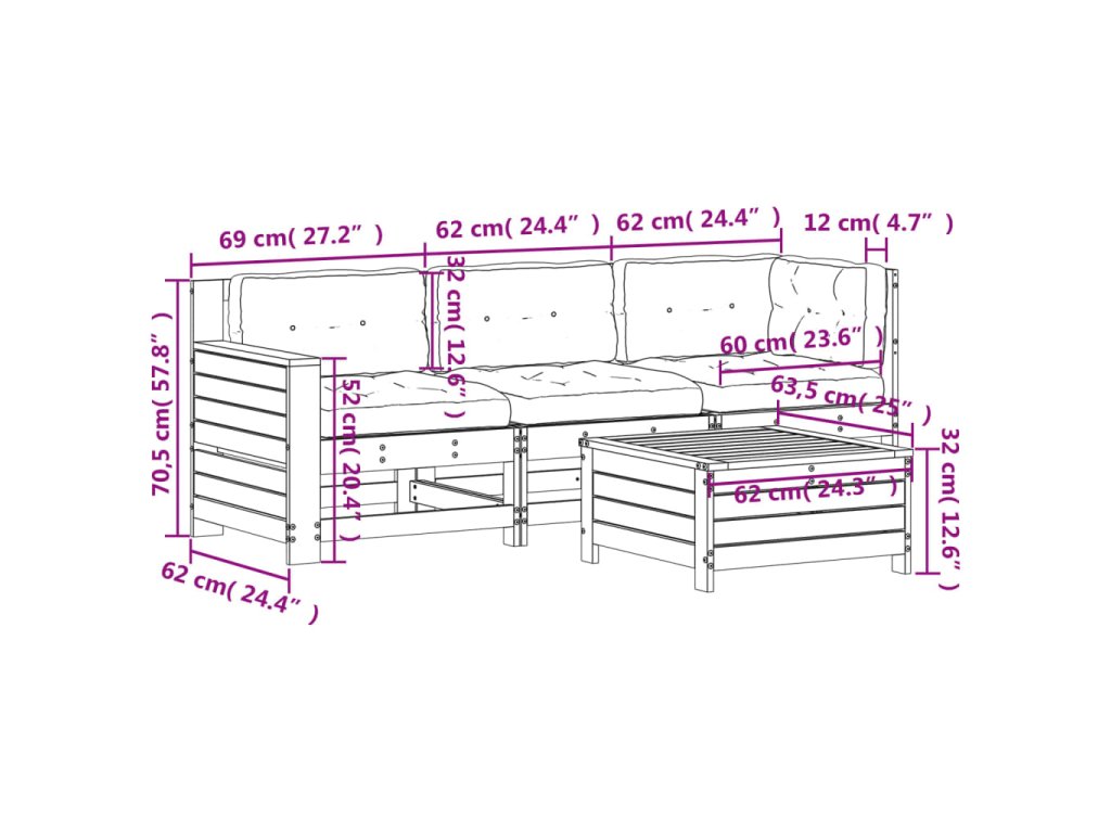4dílná zahradní sedací souprava s poduškami masivní douglaska 3250774