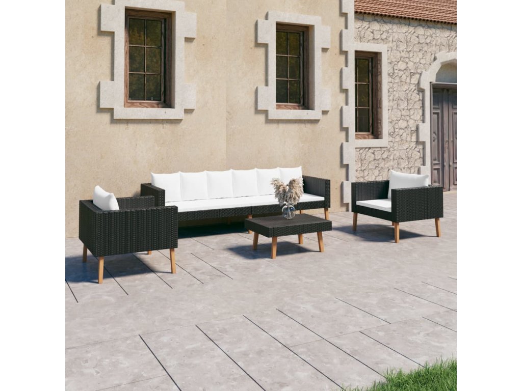 4dílná zahradní sedací souprava s poduškami polyratan černá 3059332