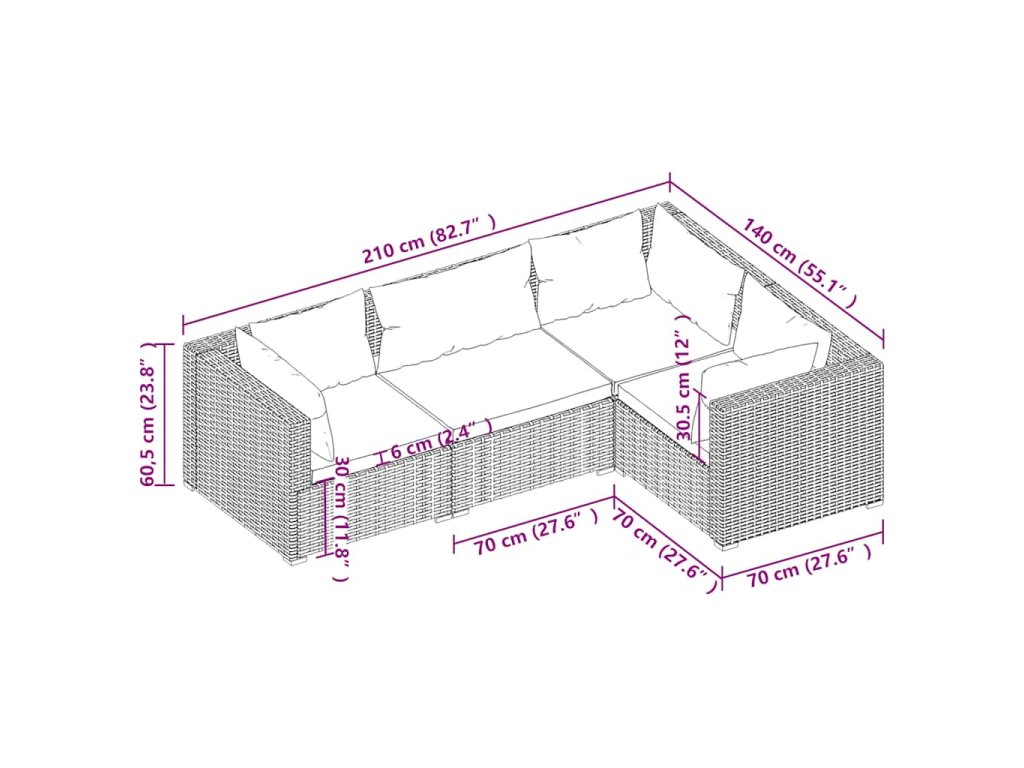 - Rozměry rohové/středové pohovky (každé): 70 x 70 x 60,5 cm (D x Š x V)