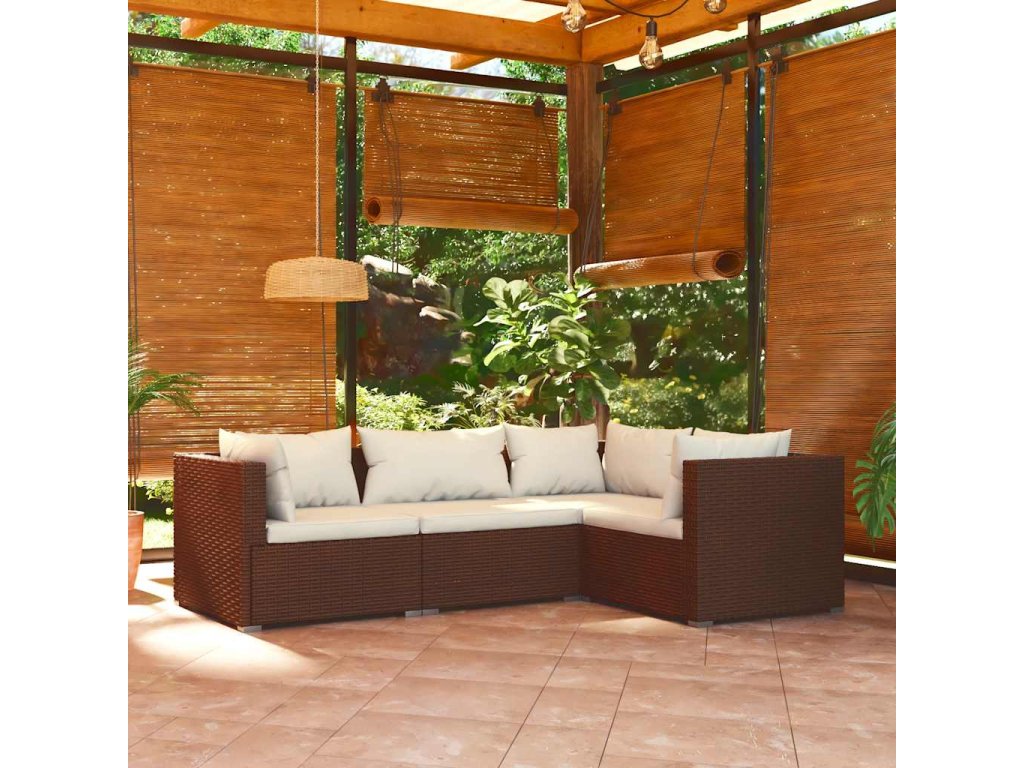 4dílná zahradní sedací souprava s poduškami polyratan hnědá 3101674