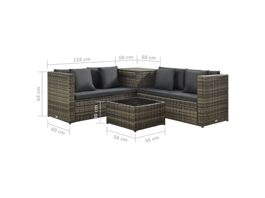 4dílná zahradní sedací souprava s poduškami polyratan šedá 313137