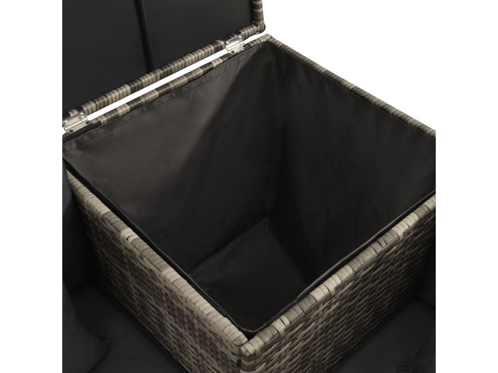 Sestava je vyrobená z voděodolného PE ratanu, a proto se snadno čistí, hodně toho vydrží a můžete ji venku klidně používat každý den. Sedací souprava má robustní ocelový rám s práškovým nástřikem, který jí zajišťuje dlouhou životnost. Odnímatelné podušky na sedák a opěradlo jsou velmi pohodlné. Polyesterové potahy jsou měkké a snadno se čistí. Díky velkému úložnému boxu můžete uvnitř uložit libovolné předměty a ihned je vyjmout. Ratanová sedací souprava se dá snadno přemisťovat a přizpůsobit každému prostředí.