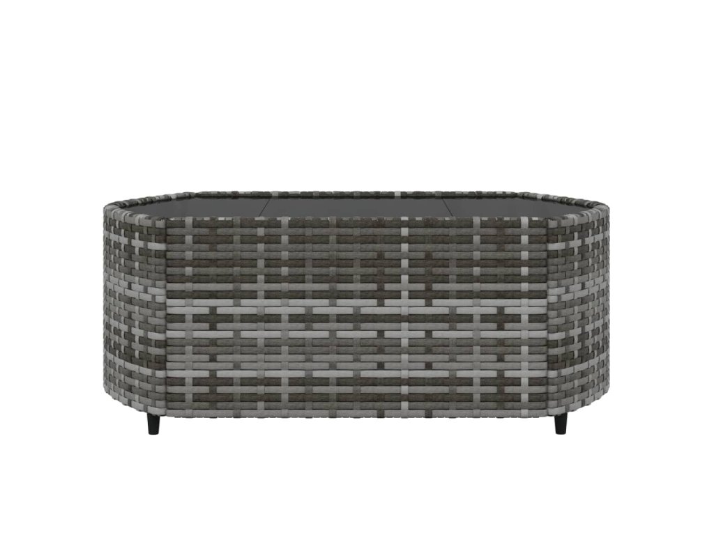 - Materiál: PE ratan, práškově lakovaná ocel, tkanina (100% polyester), tvrzené sklo