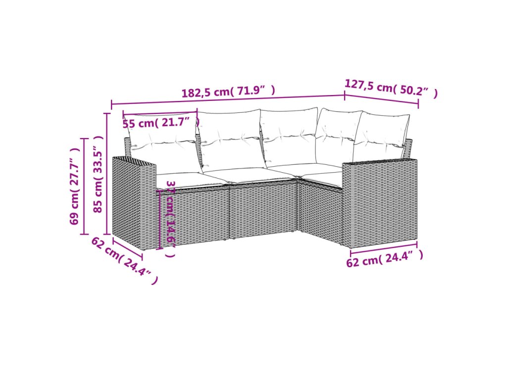 Tato zahradní sedací souprava je dokonalým doplňkem vaší zahrady, terasy nebo dvorku a poskytne vám pohodlné a příjemné místo, kde si můžete povídat s rodinou a přáteli nebo jen tak odpočívat a užívat si pobyt venku.