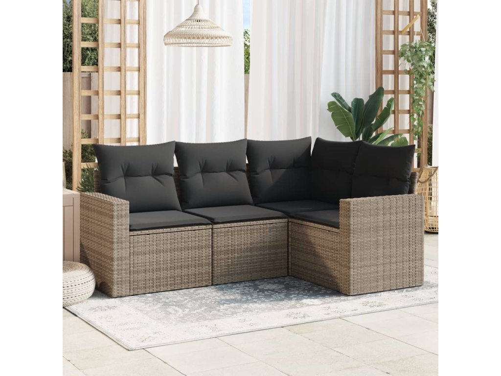 4dílná zahradní sedací souprava s poduškami šedá polyratan 3218900
