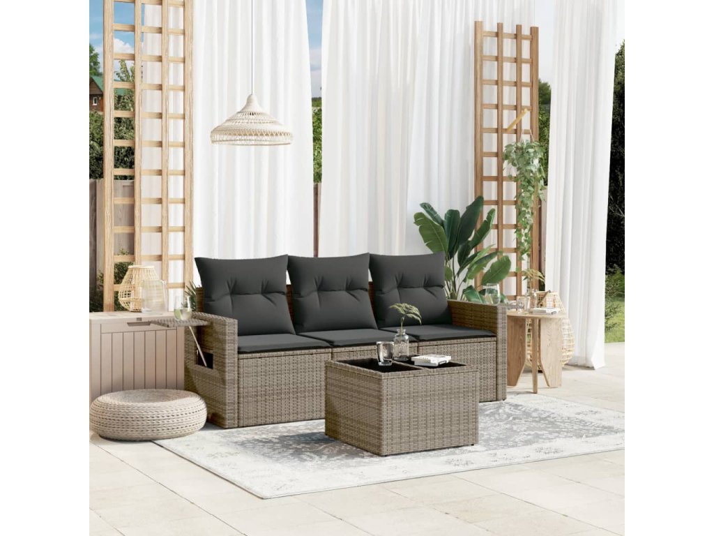 4dílná zahradní sedací souprava s poduškami šedá polyratan 3252207