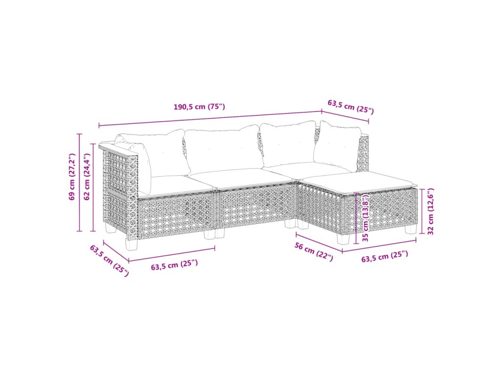 4dílná zahradní sedací souprava s poduškami šedá polyratan 3261783