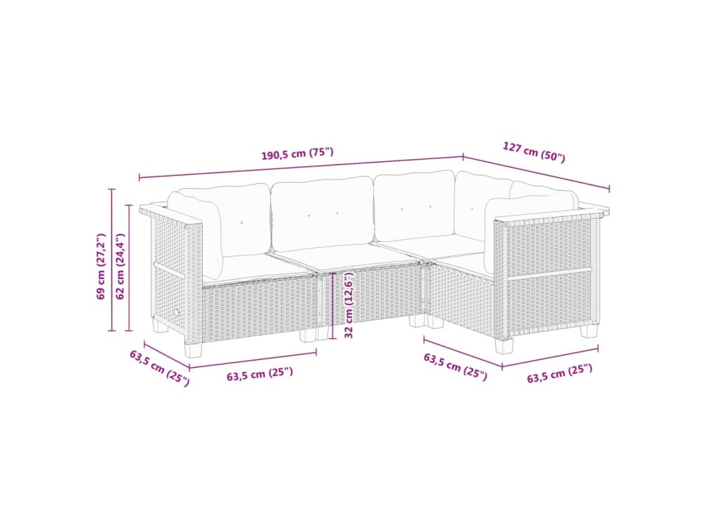 4dílná zahradní sedací souprava s poduškami šedá polyratan 3261798
