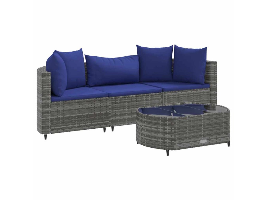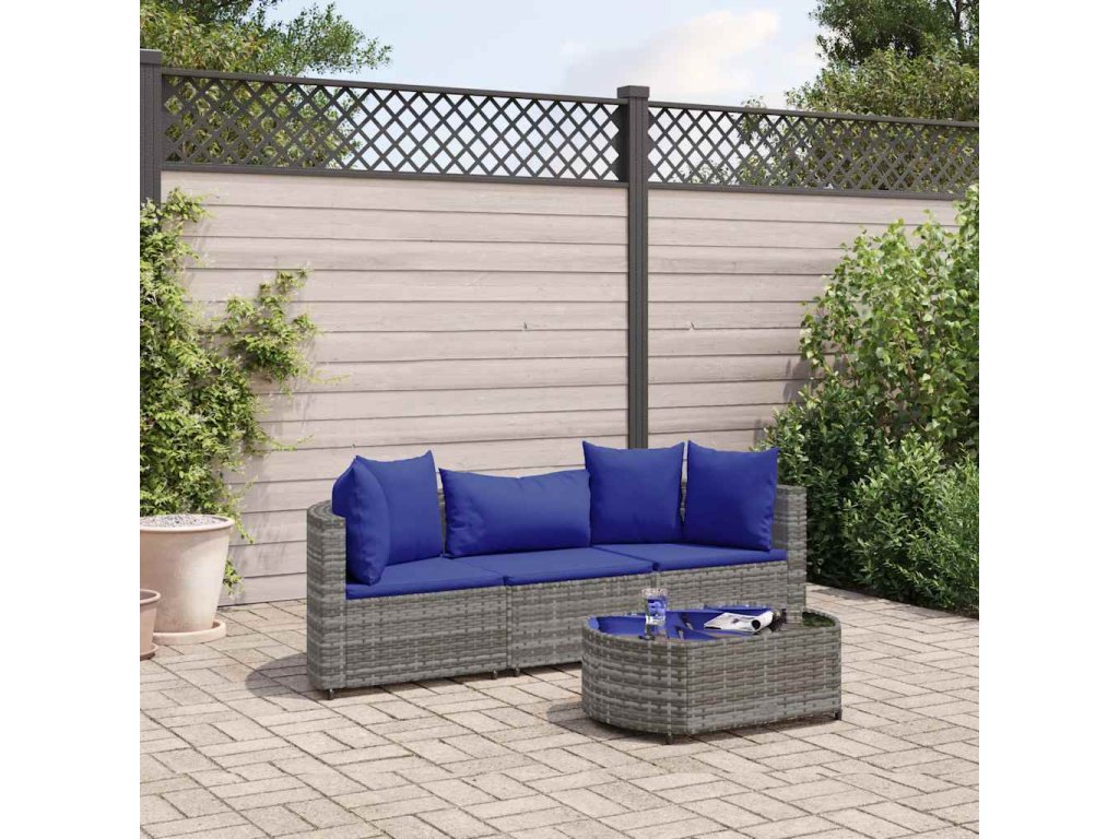 4dílná zahradní sedací souprava s poduškami šedá polyratan 3308367