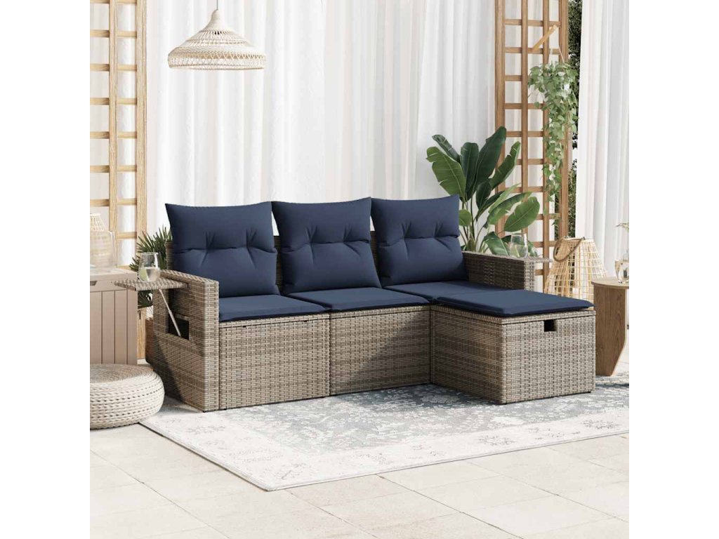 4dílná zahradní sedací souprava s poduškami šedá polyratan 3325457